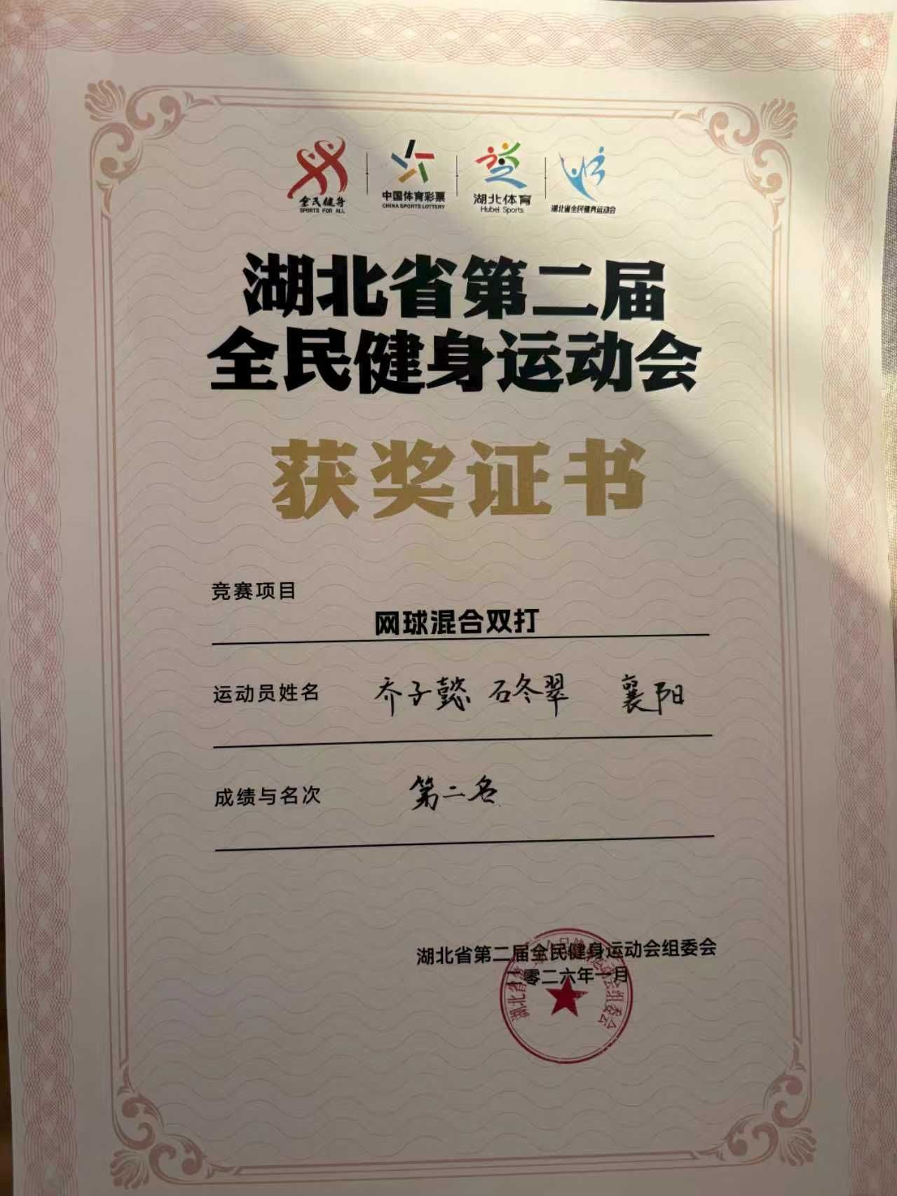 (通讯员 罗逸)在近日落幕的湖北省第二届全民健身运动会上,雷竞技raybet官网版下载乔子懿老师凭借精湛的球技与默契的配合,在高手云集的网球混合双打项目中勇夺第二名,为学校赢得了荣誉,展现了高校体育教师卓越的竞技水平和昂扬的精神风貌。